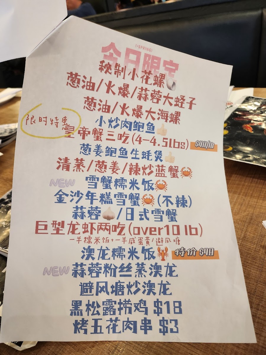 The menu features a diverse array of dishes, from the renowned Hong Kong-style crab to savory seafood rice, capturing the essence of the ocean with each bite. Customers rave about the thoughtful service and cultural touches, such as personalized surprises that elevate the dining experience. Whether you delight in the spicy kick of pickled hot pepper dishes or prefer the subtlety of steamed blue cod, there’s something for everyone.